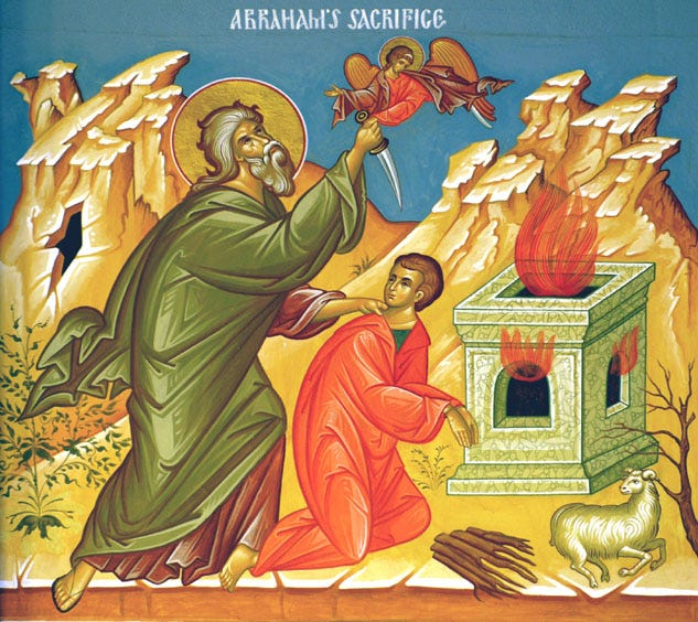 Similarly, Moses’ mediation of the covenant on Horeb prefigures Christ as the true Mediator between God and humanity. In Exodus 24, the people are sprinkled with the blood of the covenant, a sign of divine election and consecration.[6] Here, too, the act of sacrifice transcends its immediate ritual function, prefiguring the Eucharistic mystery in which the New Covenant is established through the blood of Christ. The Orthodox liturgical tradition reflects the typological relationship of the covenantal events found in the Old Testament to Christ’s Passion. The Synaxarion of the Sunday before the Nativity of Christ states "Bound for slaughter, O Isaac, you are a figure of the Word Most High, who shall come to be slaughtered".[7] This liturgical reading reinforces the idea that Isaac’s binding is a direct prefiguration of Christ’s Passion as wee as Isaac’s silent submission as a model of ascetic obedience.